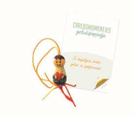 Het creëren en delen van mooie momenten kan zo gemakkelijk zijn. Dat bewijst ook dit superleuke gelukspoppetje. Speciaal ontworpen voor Stichting Carlosmomentjes en met liefde handgemaakt. Om te geven aan iemand die je bewondert of die je lief hebt. Aan iemand die wel een steuntje in de rug of dikke knuffel kan gebruiken. Of zomaar, omdat het nu eenmaal leuk is om geluk weg te geven.